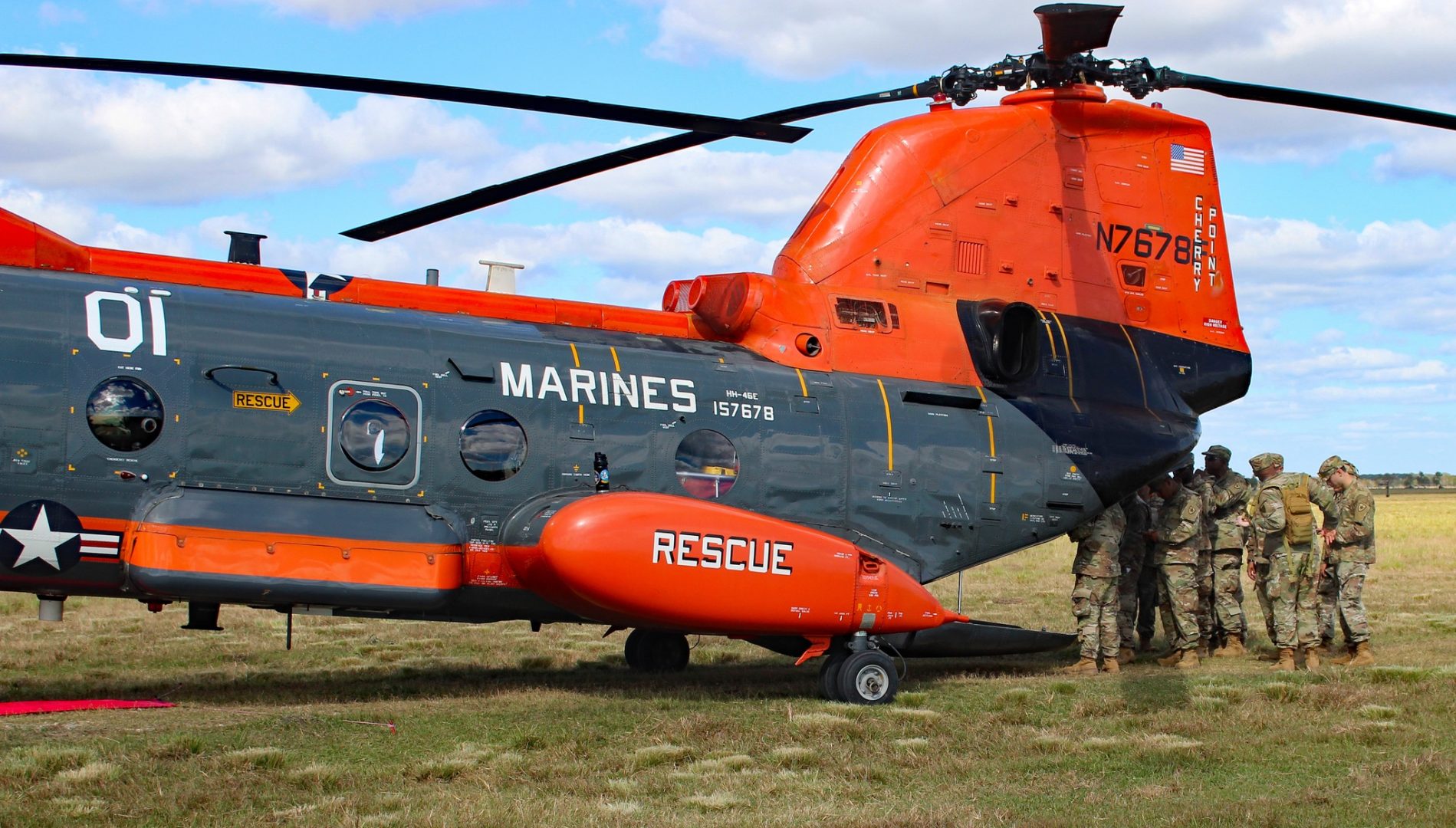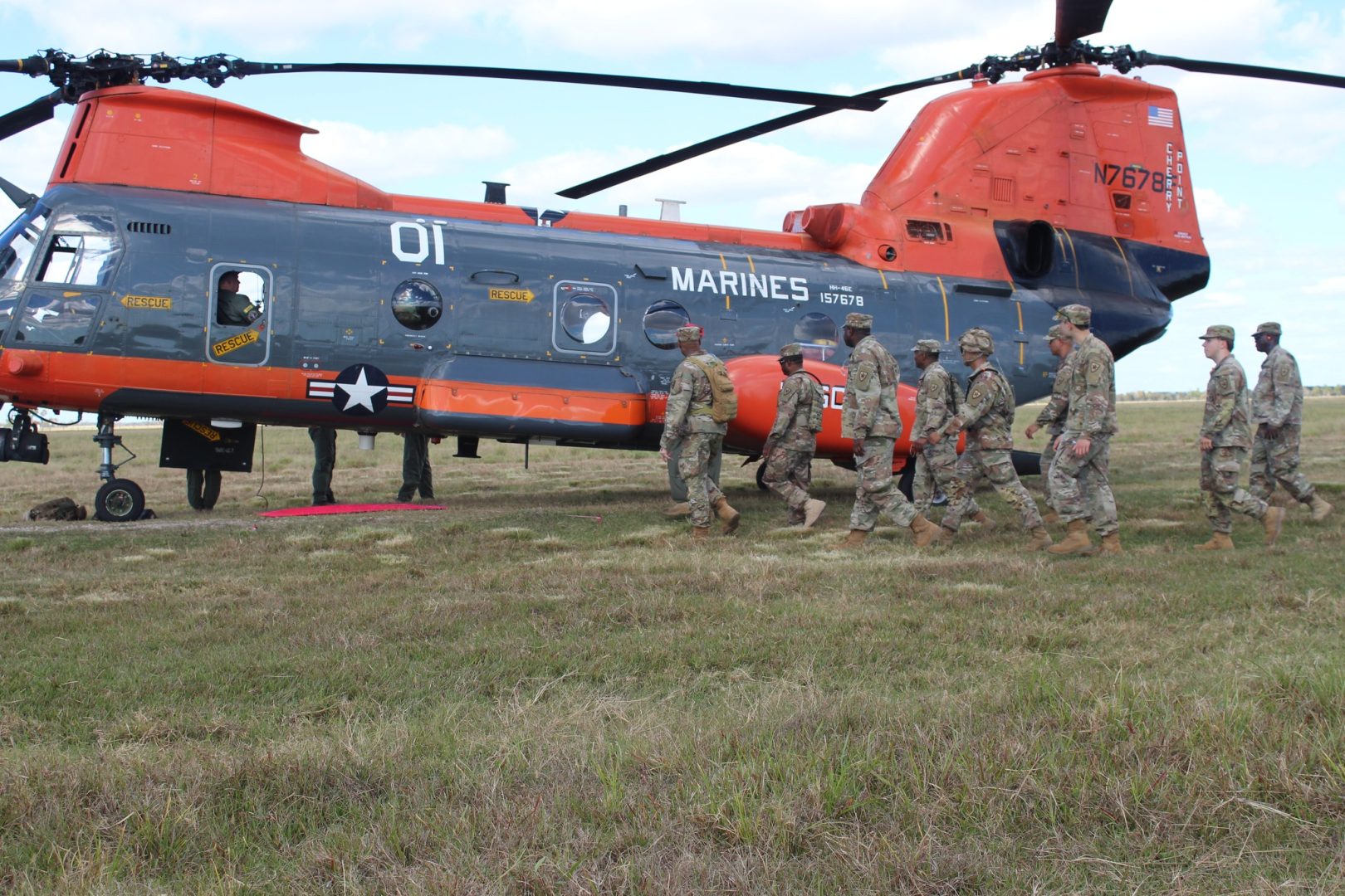 Guardsmen of 4th Battalion, 2nd Brigade, Texas State Guard, honed their skills in Search and Rescue, Land Navigation, and aeromedical evacuation support training with the assistance of National United States Armed Forces Museum personnel and their CH-46 helicopter in Angleton, Texas, Nov. 15, 2025. Guardsmen also reinforced their basic first aid skills, practiced loading and unloading patients and learned to prepare an ad hoc landing site as would be utilized in a natural disaster or other emergency. Thank you to our valued agency partners without whom such an exercise would not be possible. These field exercises develop and strengthen the skills needed to assist as needed during natural disasters and other emergencies. 2nd Brigade is ad omnia parati, “Ready for Anything!” (Texas State Guard photos by Chief Warrant Officer 2 Willie Grimes)