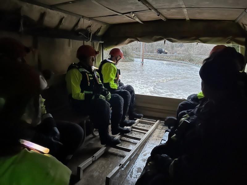 Guard personnel are supporting swift water rescue missions in Burlington this morning, helping those citizens who are in need to evacuation and medical attention.