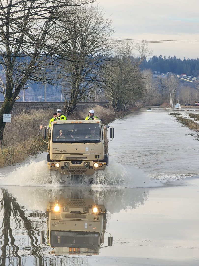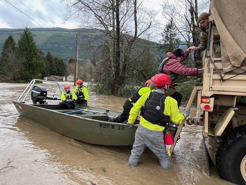 Gov. Bob Ferguson signed Emergency Proclamation 25-07 on Dec. 10, authorizing the use of the Washington National Guard. Guard members will assist with evacuation efforts, staff traffic control points and support sandbag operations. Army National Guard helicopter crews may also be used to aid search and rescue missions.