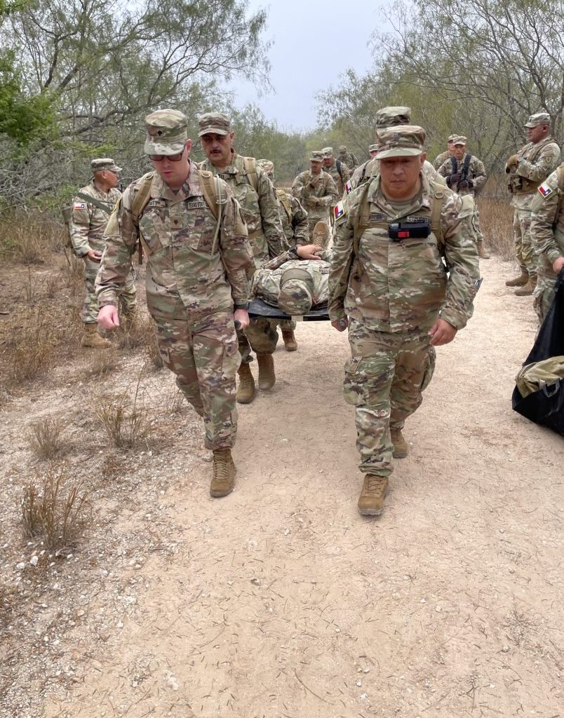 The brigade also conducted training on Aerial Port of Embarkation and Aerial Port of Disembarkation operations. These exercises prepare soldiers to work seamlessly with Army National Guard and U.S. Coast Guard aviation assets during medical evacuations. Guardsmen trained to properly clear landing zones, safely approach aircraft, and secure casualties for air transport when injuries are severe and time is critical. This coordination ensures that injured Texans can be rapidly moved from austere environments to hospitals capable of providing advanced medical treatment.