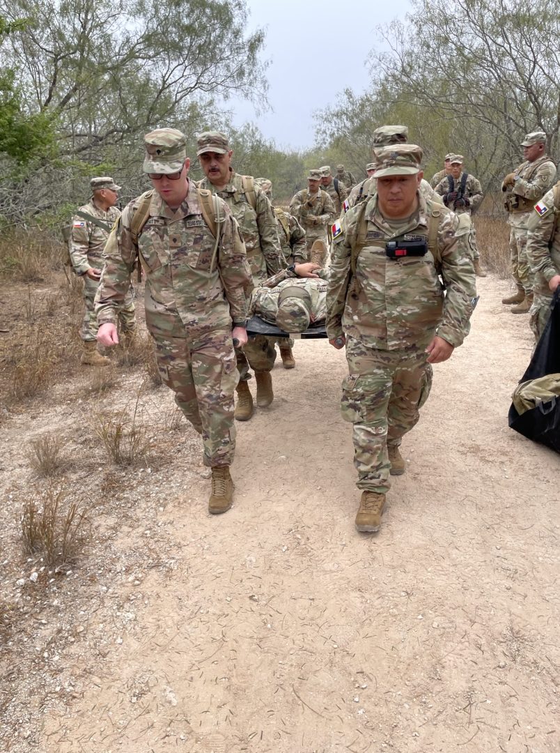 The brigade also conducted training on Aerial Port of Embarkation and Aerial Port of Disembarkation operations. These exercises prepare soldiers to work seamlessly with Army National Guard and U.S. Coast Guard aviation assets during medical evacuations. Guardsmen trained to properly clear landing zones, safely approach aircraft, and secure casualties for air transport when injuries are severe and time is critical. This coordination ensures that injured Texans can be rapidly moved from austere environments to hospitals capable of providing advanced medical treatment.