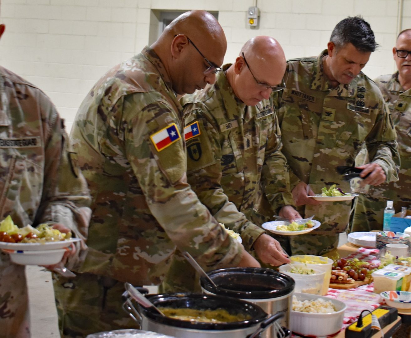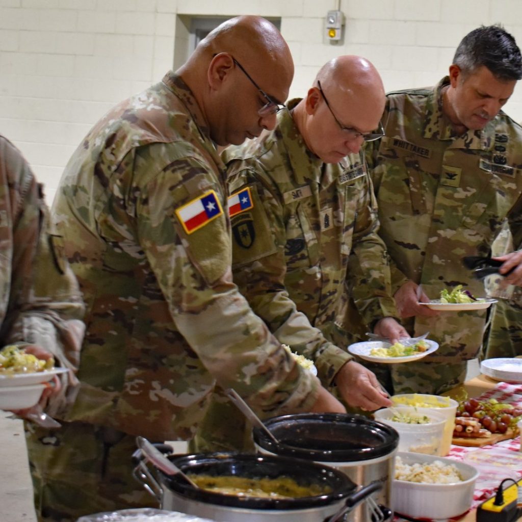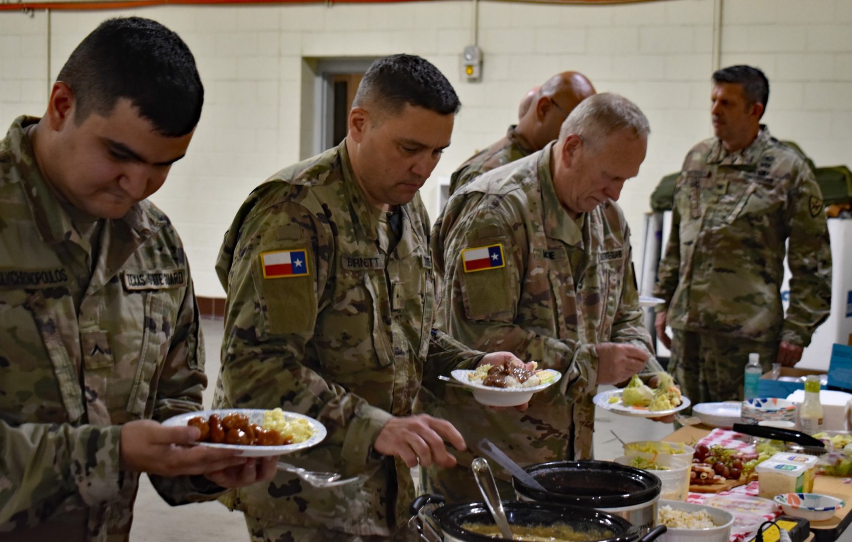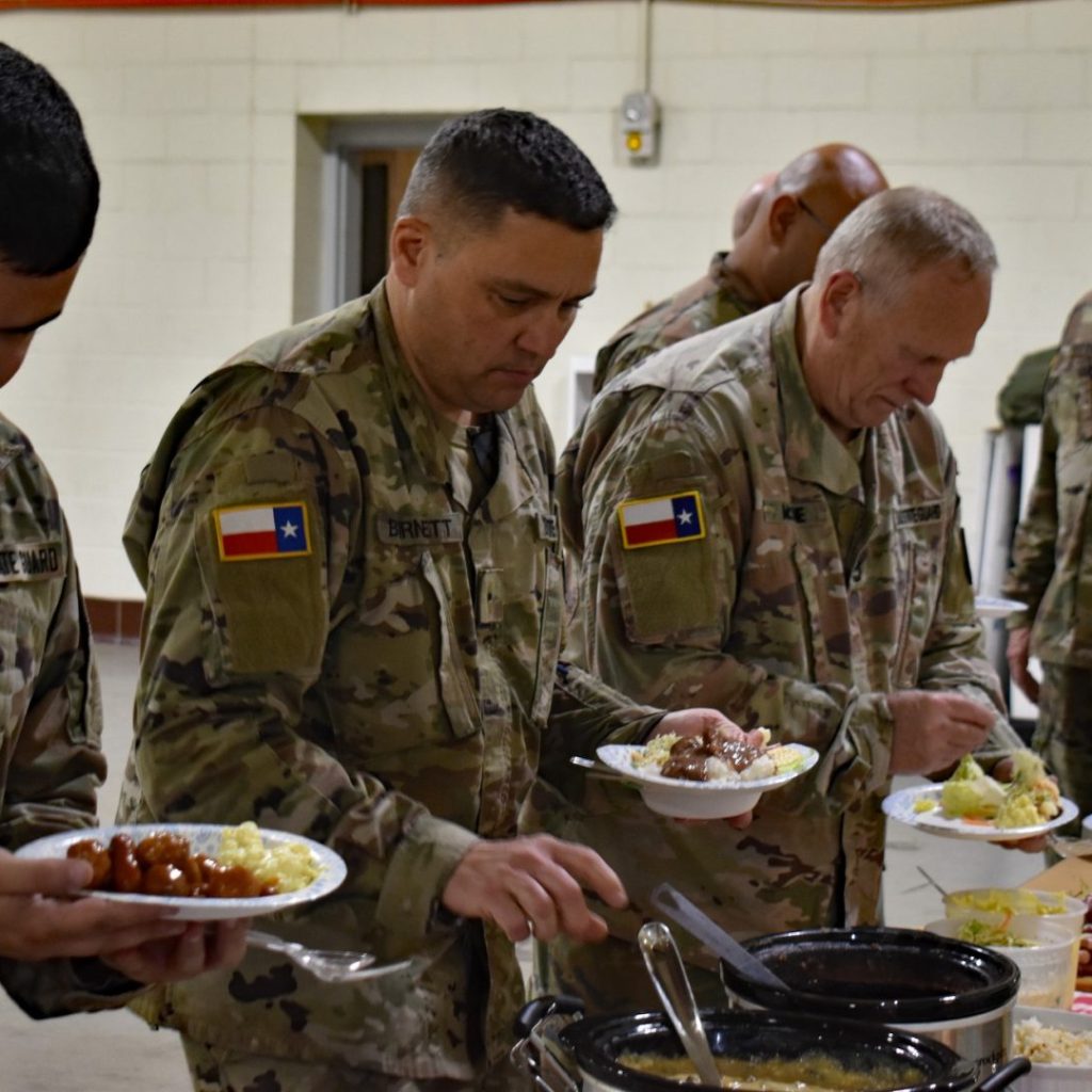 Guardsmen of Headquarters, 2nd Brigade, Texas State Guard, enjoy a holiday potluck meal and celebration at the Texas National Guard Amory, Houston, Texas, Dec. 13, 2025. After a successful and productive year with various missions, training opportunities, and welcoming new leadership in June, it was important to take time to enjoy home cooking and the company of fellow guardsmen and their family members who provide vital support all year. Well done all, and Happy Holidays! (Texas State Guard photos by Chief Warrant officer 2 Gregory Illich)