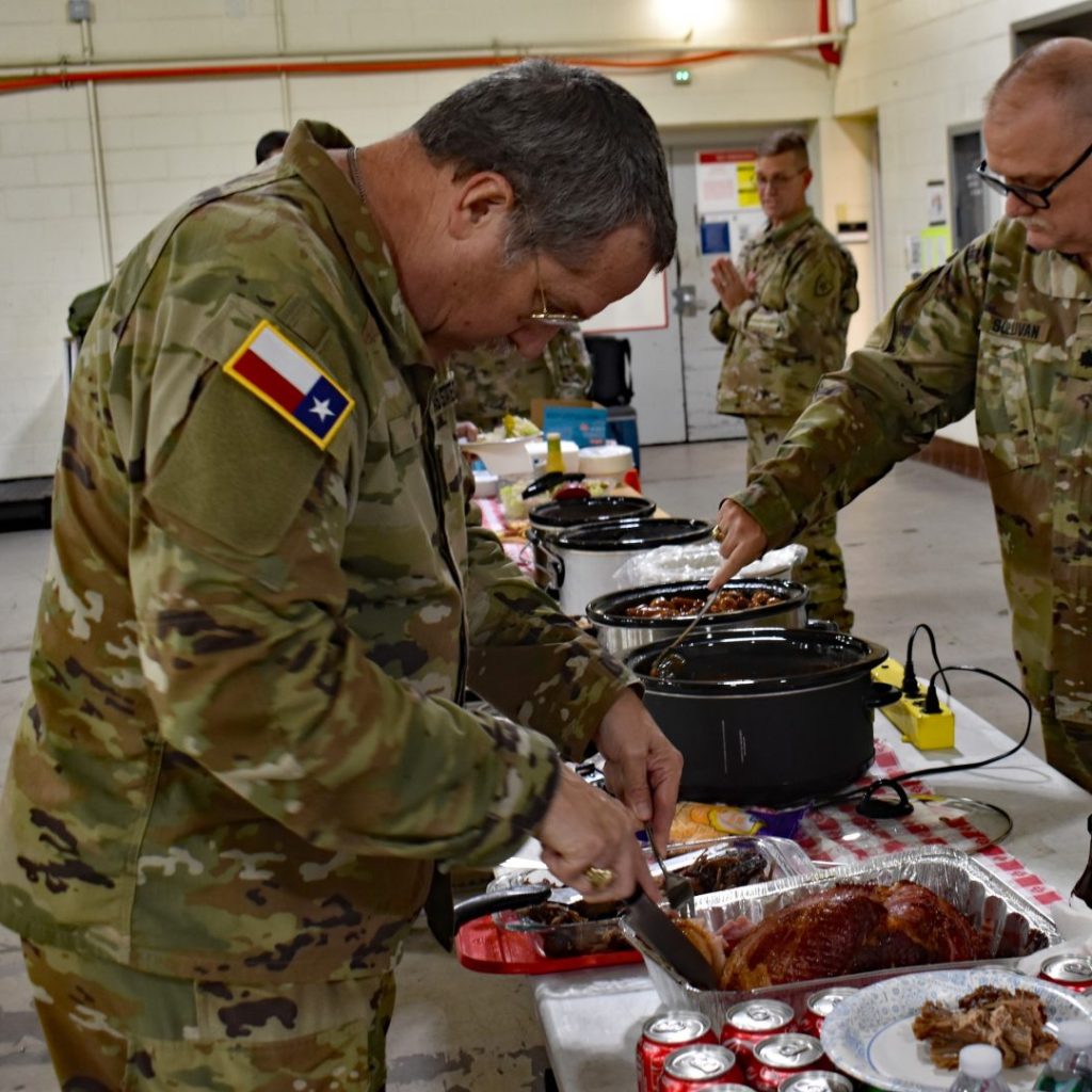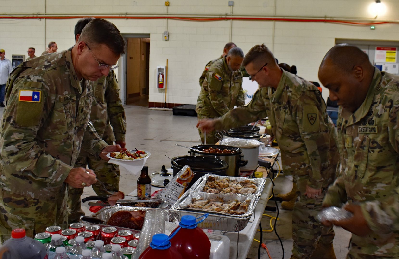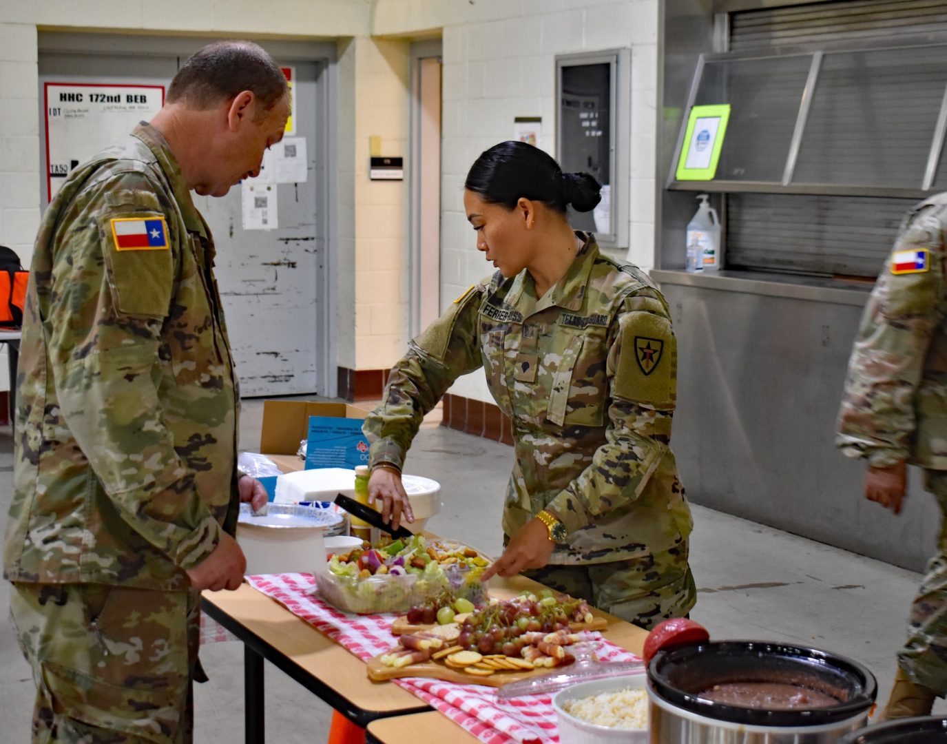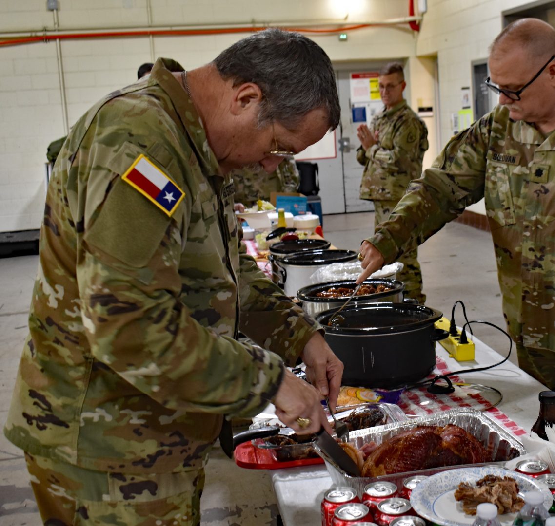 Guardsmen of Headquarters, 2nd Brigade, Texas State Guard, enjoy a holiday potluck meal and celebration at the Texas National Guard Amory, Houston, Texas, Dec. 13, 2025. After a successful and productive year with various missions, training opportunities, and welcoming new leadership in June, it was important to take time to enjoy home cooking and the company of fellow guardsmen and their family members who provide vital support all year. Well done all, and Happy Holidays! (Texas State Guard photos by Chief Warrant officer 2 Gregory Illich)