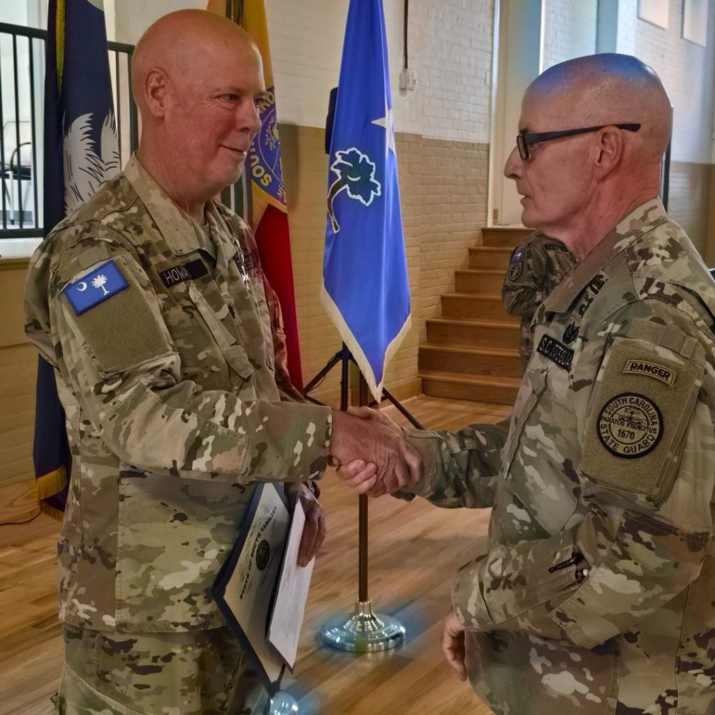 That transition continued as the South Carolina State Guard recently recognized Lieutenant Colonel John Howard, who officially retired after ten years of service to the citizens of South Carolina. During a formal ceremony, LTC Howard was presented the Medal of Merit in recognition of his dedication and leadership. His service reflected a deep commitment to the Guard’s mission, and his contributions helped strengthen the organization during a period of continued growth and operational demand.