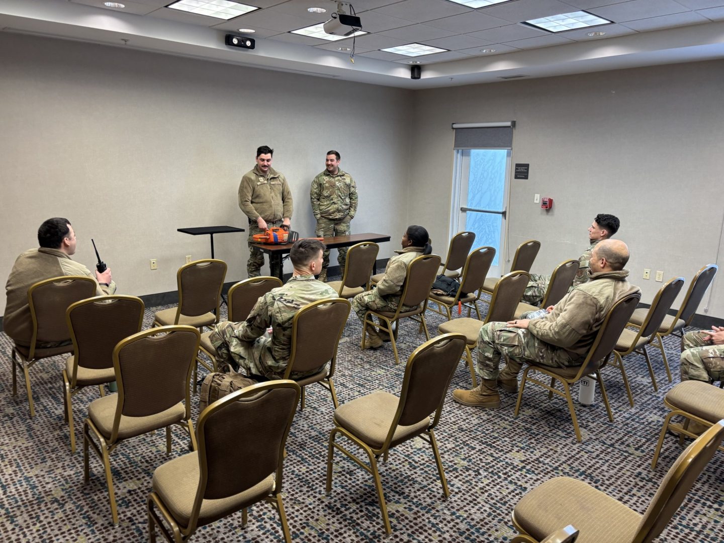 Since some of the volunteers were new to this particular mission, the senior members of the GSDF led classes on how to operate and troubleshoot chainsaws. They also taught the safety precautions when utilizing such machinery whereas the senior leaders of the 878th Engineer Battalion ensured that the volunteers had deliberate risk assessments and knowledge on safely maneuvering through icy conditions on the roadways.