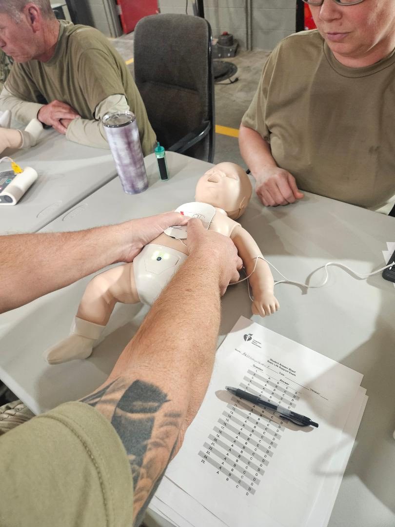 The AHA BLS/AED course trains participants to perform high-quality CPR on adults, children, and infants, as well as operate the Automated External Defibrillator (AED) safely and effectively. The training focused on providing rescue breathing, relieve choking due to airway obstruction, and function as part of a coordinated team during cardiac arrest scenarios. It also teaches recognition of cardiac arrest, stroke, and other life-threatening emergencies. This certification is typically required for nurses, physicians, EMTs, paramedics, firefighters, law enforcement officers, dental professionals, and other healthcare providers. By certifying Army National Guard soldiers to this standard, the Tennessee State Guard ensures they are equipped to deliver immediate lifesaving care until advanced medical personnel arrive.