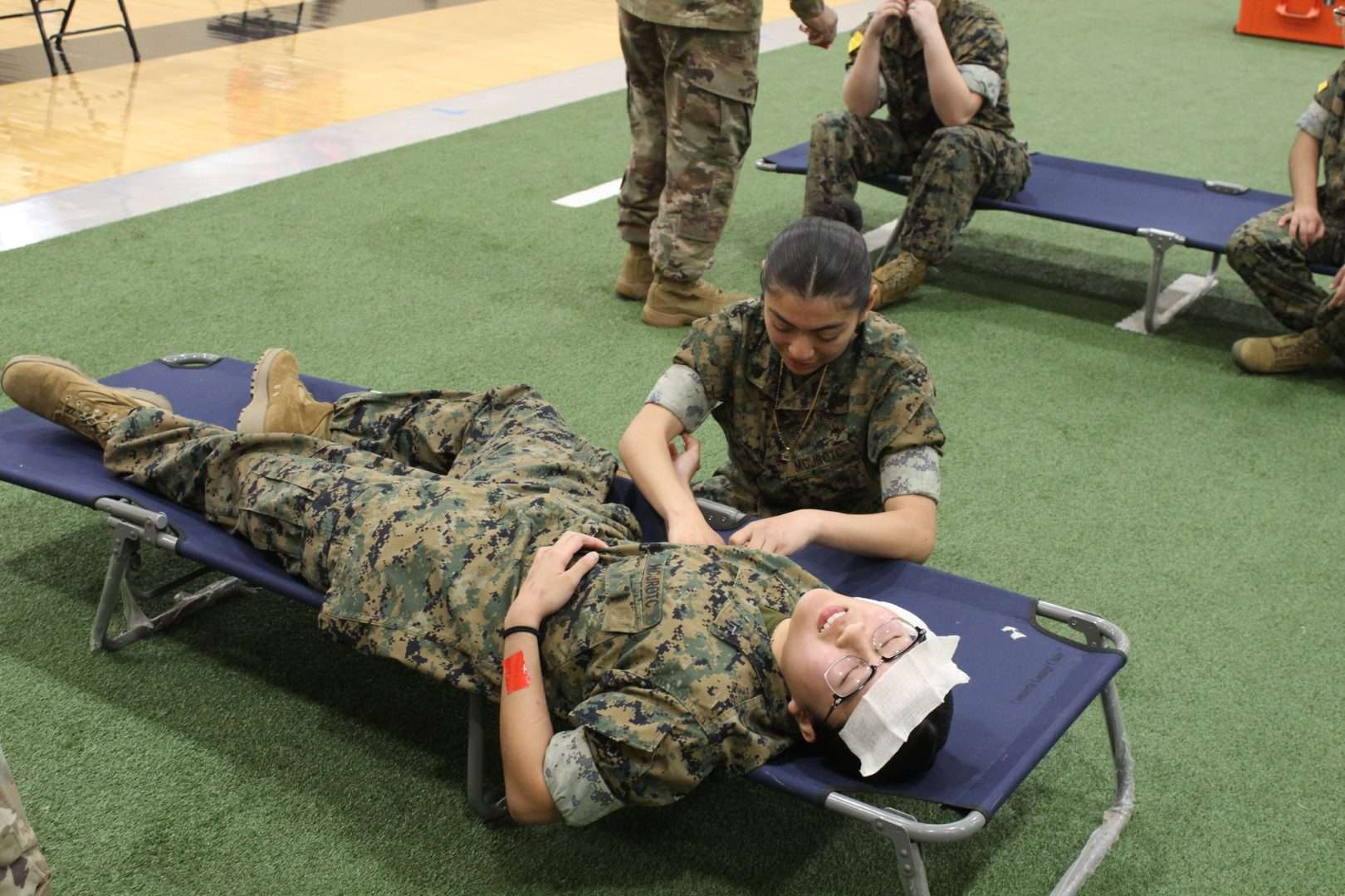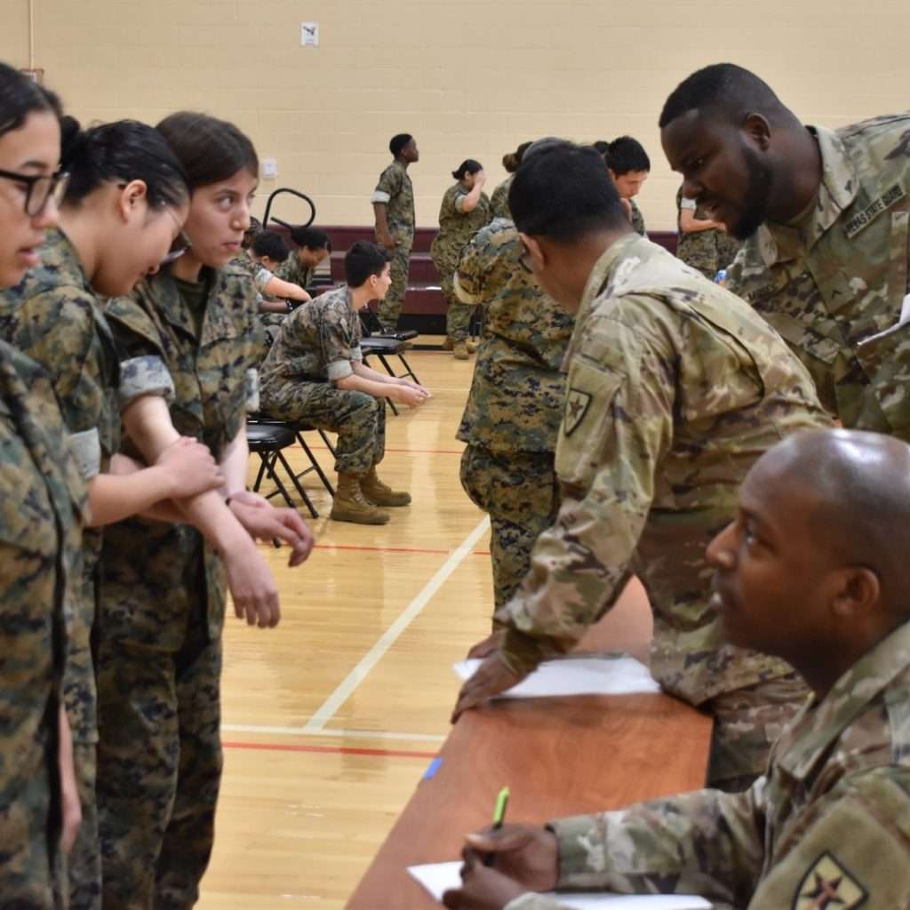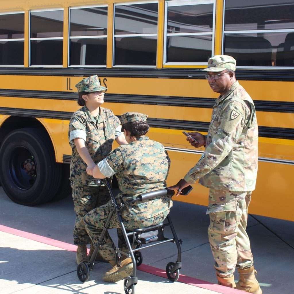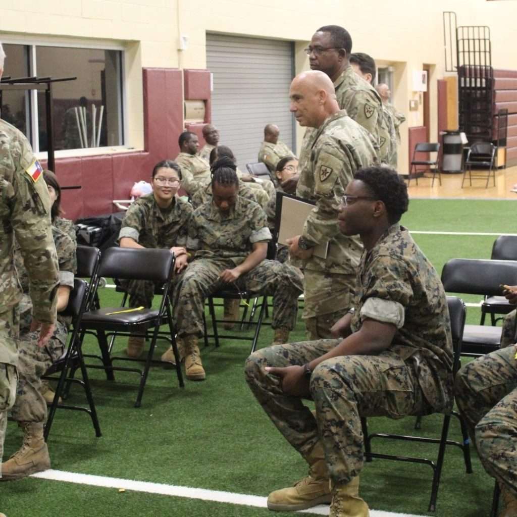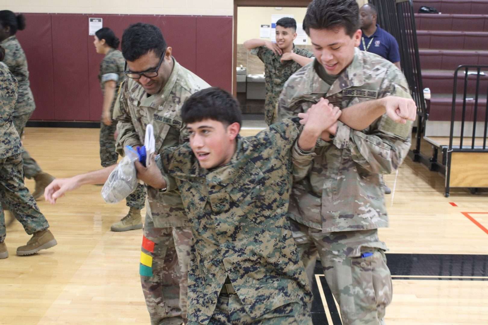 Guardsmen of 4th Battalion, 2nd Brigade, Texas State Guard, join with the Marine Corps JROTC Cadets of the International Leadership of Texas Katy-Westpark High School for a combined Field Training Exercise (FTX) simulating Shelter Operations, Mass Care Response and evacuation using the Emergency Tracking Network (ETN), Richmond, Texas, March 21, 2026. During the simulated emergency, organized and led by FTX OIC 1st Lt. Adriana Torres, Guardsmen honed their skills and shared their expertise with the cadets who stepped up to provide role players for each of the scenarios. Troops set up and operated a mock emergency shelter, responding to various situations from sudden illness to lost children to media visits. 1st Lt. Nicole Oulela led the mass care portion, briefing troops on triage and mass care techniques to efficiently provide first aid and medical evacuation. Chief Warrant Officer 2 Michael Farley, ETN Subject Matter Expert (SME) briefed the troops on the scenario and embarkation hub set up to facilitate an evacuation. All exercise portions were graded by an SME to evaluate mission readiness using the go/no-go system to ensure adherence to standards. This FTX prepares troops for more training and testing during AT next month, to be ready for hurricane season in June. A special thank you to cadets, OICs 1st Lts. Zayda Mendez and Julissa Gonzalez as well as U.S. Marine Corps Chief Warrant Officer 3, Franklin, Senior Marine Instructor. Well done all! (Texas State Guard photos by Chief Warrant Officer 2 Gregory Illich and Warrant Officer 1 Willie Grimes)