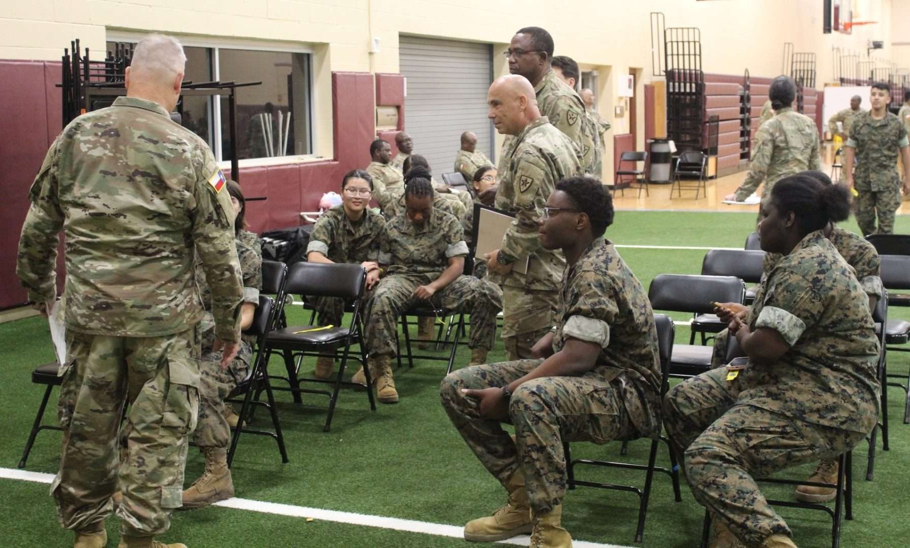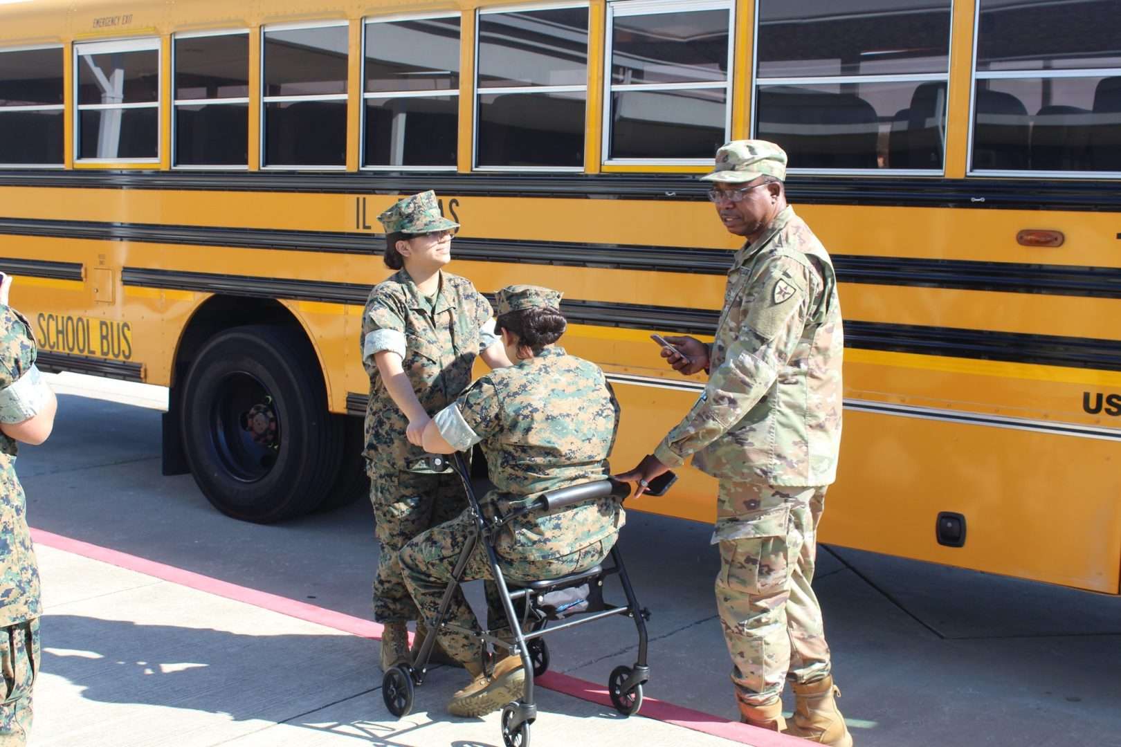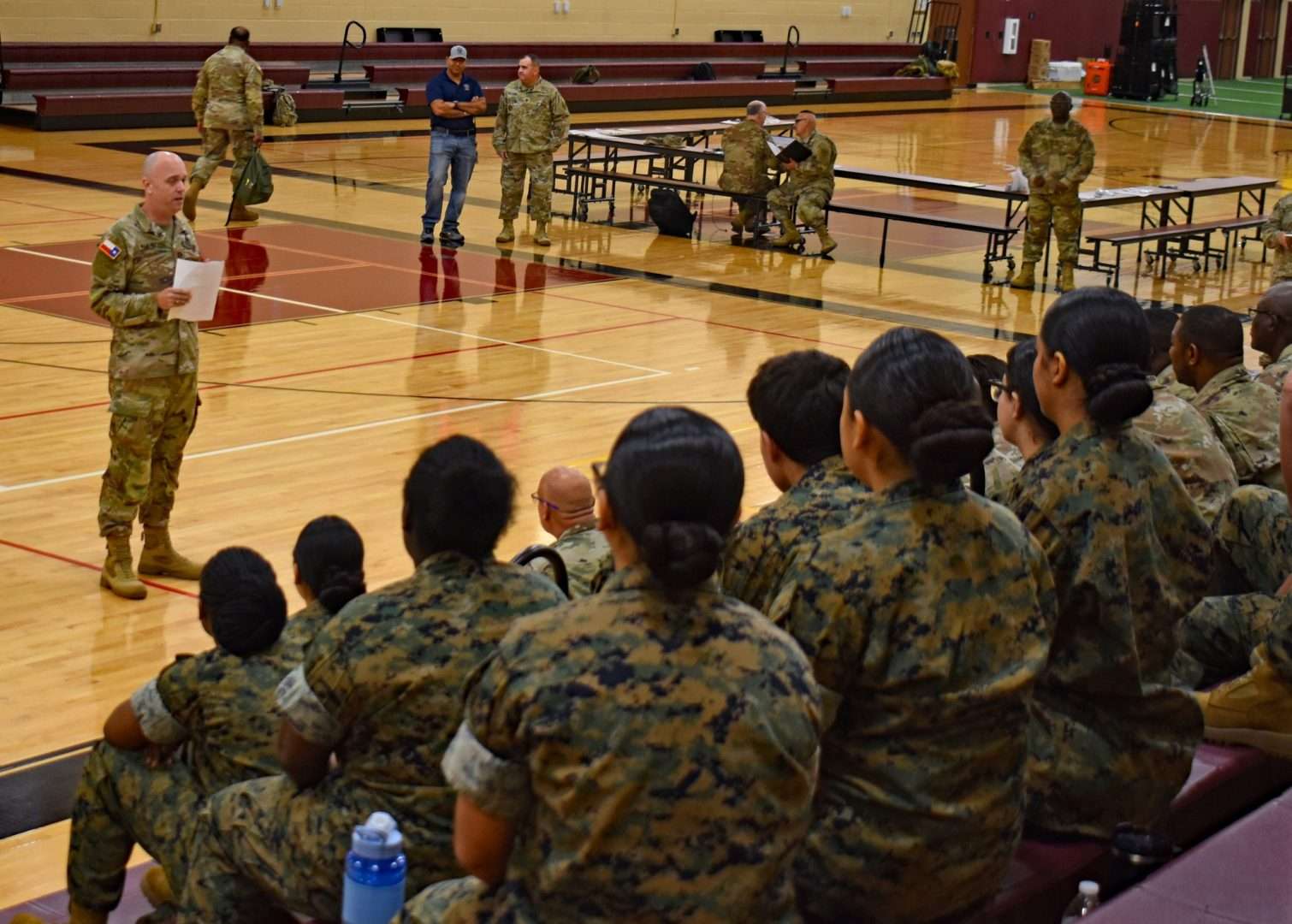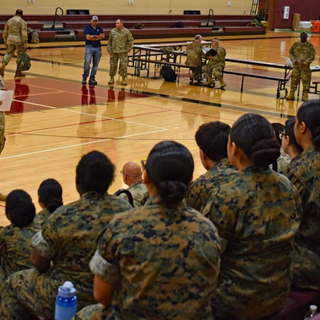 Guardsmen of 4th Battalion, 2nd Brigade, Texas State Guard, join with the Marine Corps JROTC Cadets of the International Leadership of Texas Katy-Westpark High School for a combined Field Training Exercise (FTX) simulating Shelter Operations, Mass Care Response and evacuation using the Emergency Tracking Network (ETN), Richmond, Texas, March 21, 2026. During the simulated emergency, organized and led by FTX OIC 1st Lt. Adriana Torres, Guardsmen honed their skills and shared their expertise with the cadets who stepped up to provide role players for each of the scenarios. Troops set up and operated a mock emergency shelter, responding to various situations from sudden illness to lost children to media visits. 1st Lt. Nicole Oulela led the mass care portion, briefing troops on triage and mass care techniques to efficiently provide first aid and medical evacuation. Chief Warrant Officer 2 Michael Farley, ETN Subject Matter Expert (SME) briefed the troops on the scenario and embarkation hub set up to facilitate an evacuation. All exercise portions were graded by an SME to evaluate mission readiness using the go/no-go system to ensure adherence to standards. This FTX prepares troops for more training and testing during AT next month, to be ready for hurricane season in June. A special thank you to cadets, OICs 1st Lts. Zayda Mendez and Julissa Gonzalez as well as U.S. Marine Corps Chief Warrant Officer 3, Franklin, Senior Marine Instructor. Well done all! (Texas State Guard photos by Chief Warrant Officer 2 Gregory Illich and Warrant Officer 1 Willie Grimes)