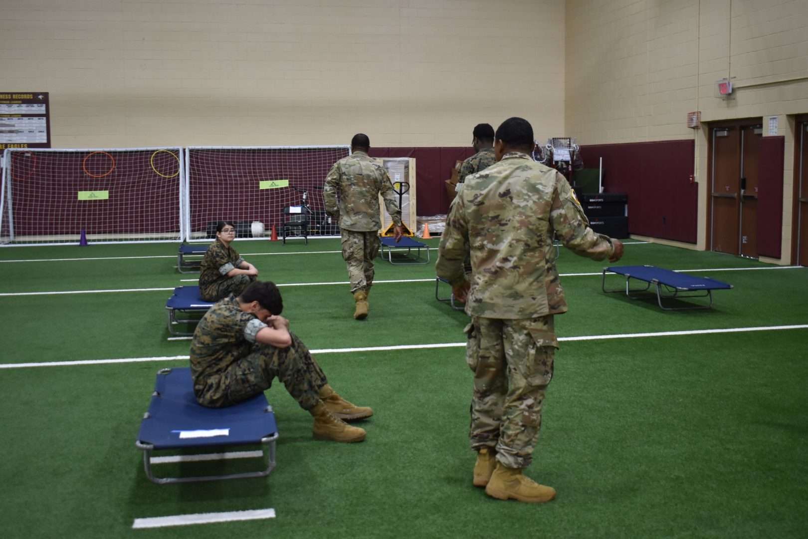 Throughout the exercise, troops established and operated a mock emergency shelter while responding to a range of evolving situations, including sudden medical issues, missing children, and even interactions with the media. The inclusion of cadets as role players added a dynamic and unpredictable element, enhancing the realism of the training environment. The mass care component, led by 1st Lt. Nicole Oulela, focused on triage procedures and efficient delivery of first aid, ensuring that Guardsmen are prepared to stabilize and coordinate medical evacuations when necessary. Meanwhile, Chief Warrant Officer 2 Michael Farley, serving as the ETN Subject Matter Expert, guided participants through evacuation coordination and embarkation hub operations, reinforcing the importance of accountability and efficient movement of evacuees during large-scale disasters.