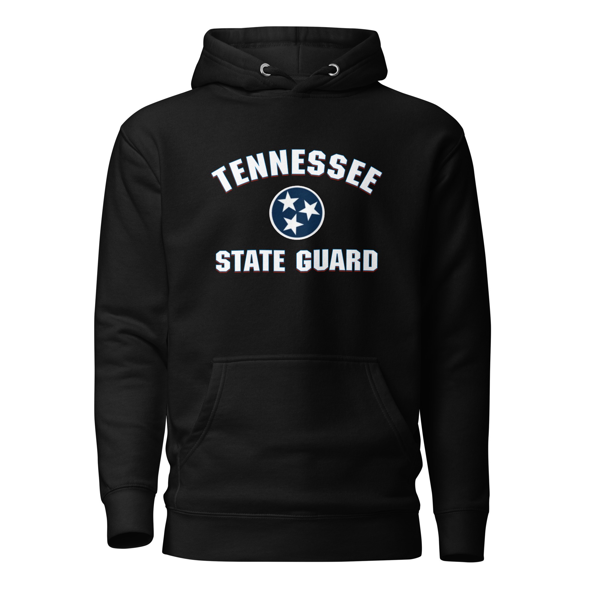 Designed by The Tennessee State Guard. This hoodie features The 3 Star of The Tennessee State Flag which represents The West, Middle and East regions of The State.