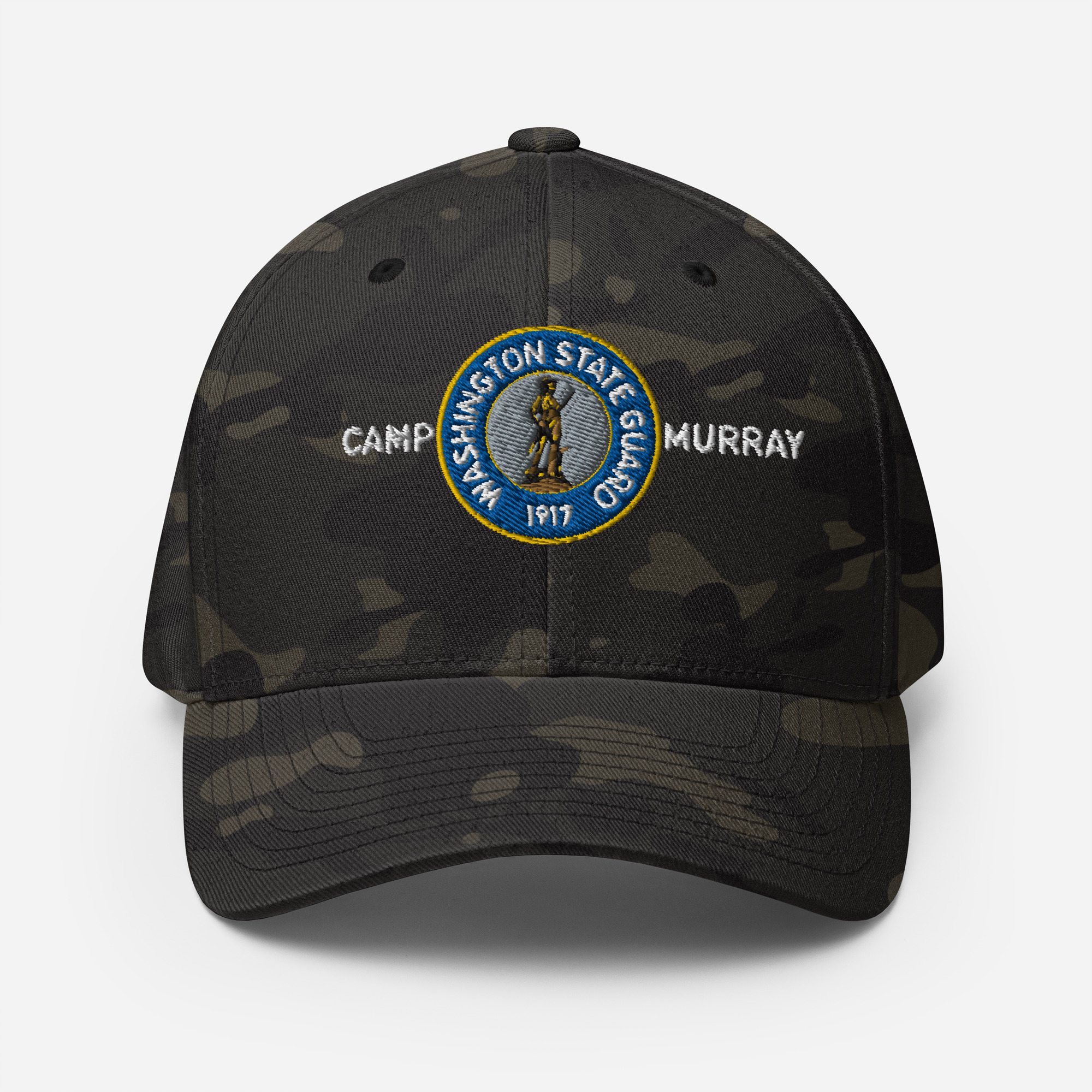 We designed a new custom cap that comes in The Multicam OCP patten. The Cap features The Blue & Gold Minuteman Emblem with Camp Murray printed alongside. The cap is perfect for those troops who want to show the pride and love they have for their service and Camp Murray.